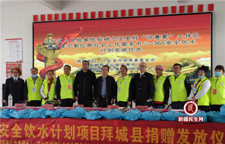 新疆民生网(鲁皓)2020年10月6日,自治区检察院、广东省丹姿慈善基金会、成都授渔公益发展中心、库尔勒红柳社会工作服务中心联合向自治区检察院所住的硝尔买里村村民捐赠156台陶瓷净水器,总价值156000元。