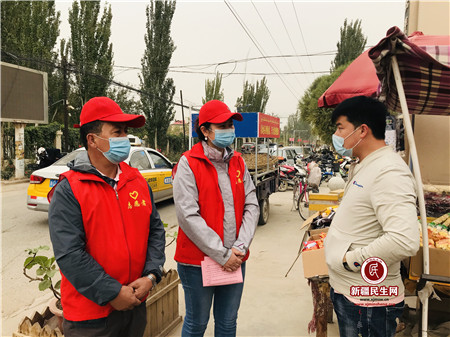 “大妈,请戴好口罩,进店买东西时要扫码,买好了出去时也要扫码,我来教您操作。”“大哥,你好!你的摊子摆得太靠前,会影响过往车辆和行人正常通行,麻烦你往后移一下。”“因为今年的疫情,大家的生意受到了的影响。最近,喀什市针对小微商家出台了很多扶持对策,现在让我们一起了解一下......”在前进村街边,巾帼志愿者们协助综合行政执法部门,用真挚的话语对道路两边经营的商家进行文明劝导,并积极参与政策宣讲工作。