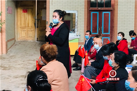 10月12日,自治区妇联党组书记、副主席王丽霞在前进村文化大院,向农民群众宣讲会议精神,并与基层群众互动交流,让新时代党的治疆方略家喻户晓、落地生根。